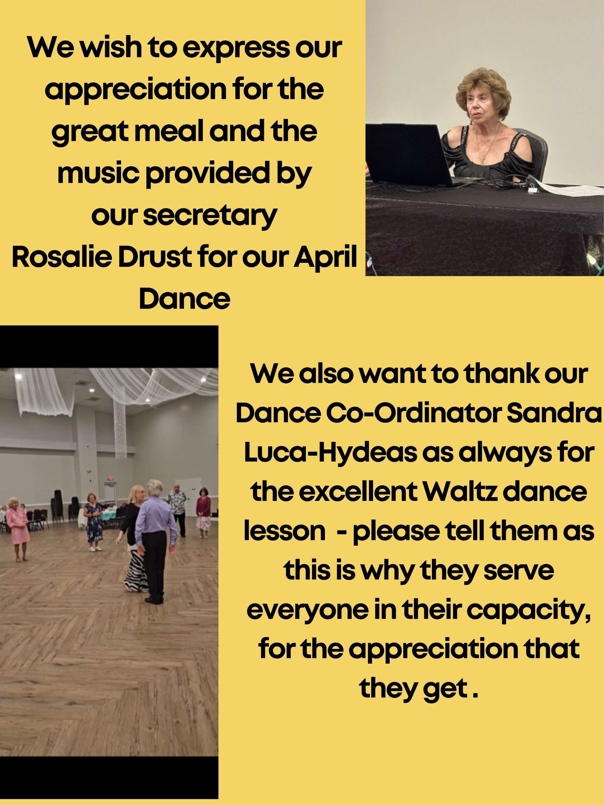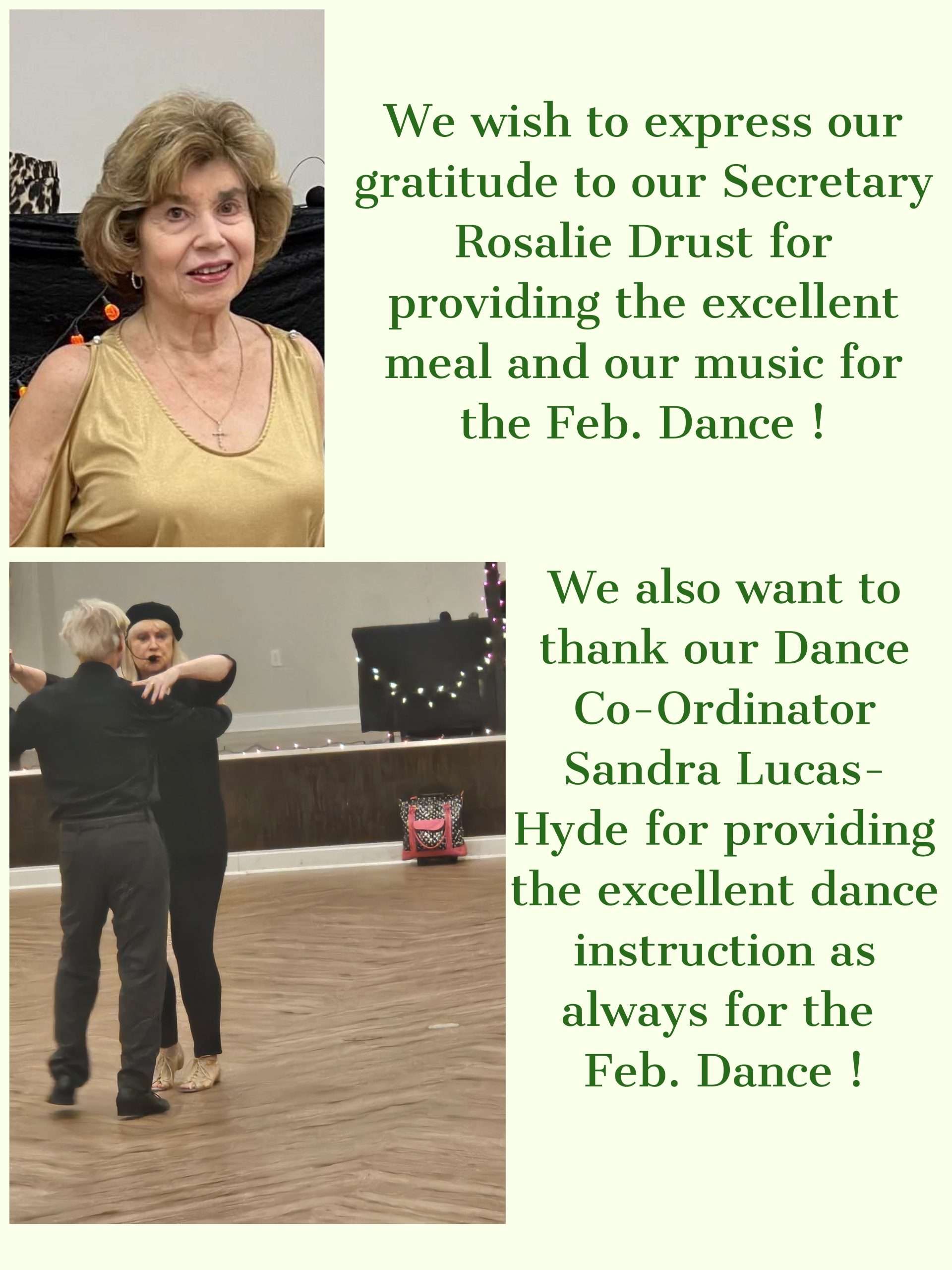 Membership is $50 a year and includes a free Members’ Only Party, free admission to the July dance, and discounted entrance fee to each dance. Our usual dances without a meal are $10 for members and $15 for non-members. We have about 150 members. You do NOT have to be a member to attend our events.